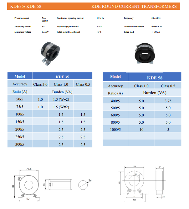 Biến dòng đo lường tròn KDE 58 – Sản xuất tại VIỆT NAM