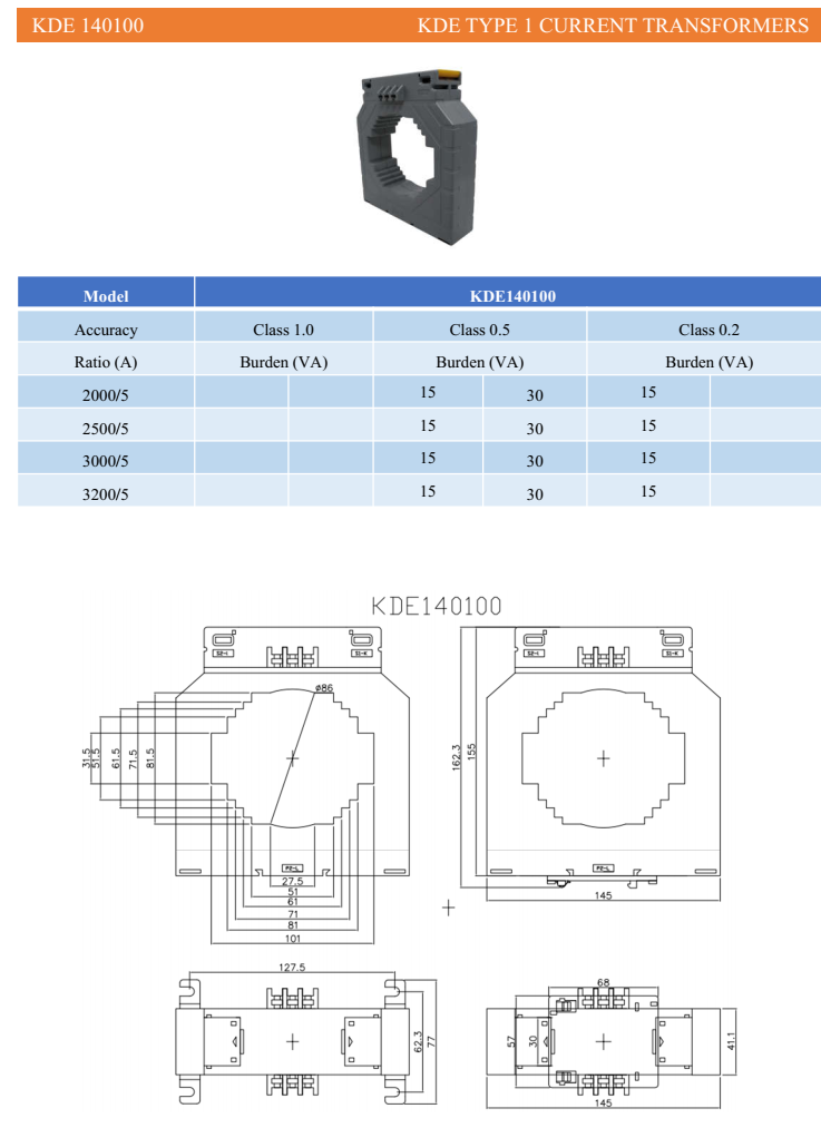- Biến dòng đo lường KDE 140100 CCX 0.5,