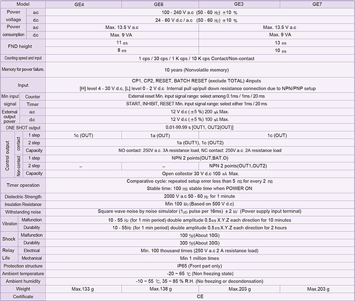 - Kích thước: GE7 - 72 x 72 mm, GE6 - 72 x 36mm, GE4 - 48 x 48mm, GE3 - 96 x 48mm