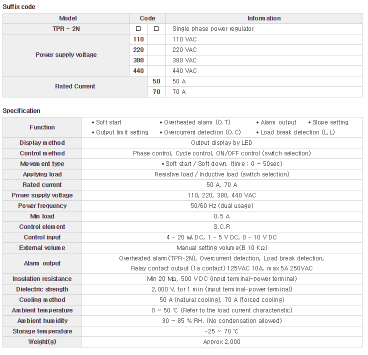 Điều chỉnh nguồn Thyristor 1 pha TPR-2N (50A, 70A)