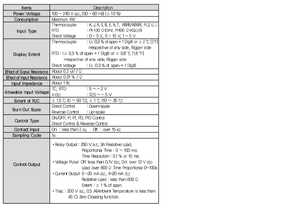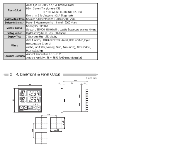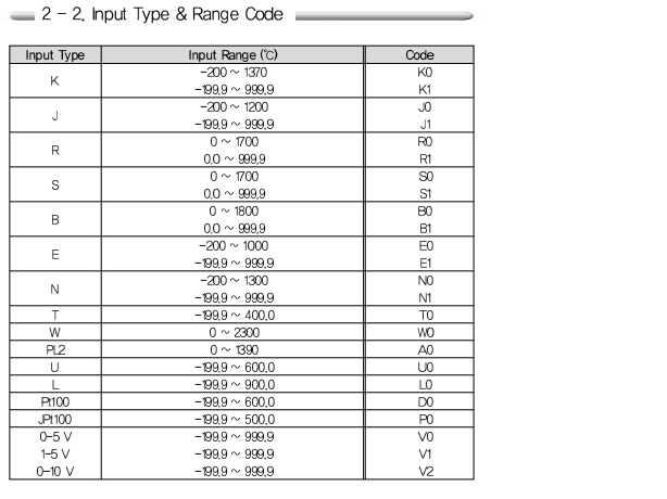 - Multi Input: K, J, R, S, B, ..., Pt100, JPt100, 0-5V, 1-5V, 0-10V, 0-20mA,