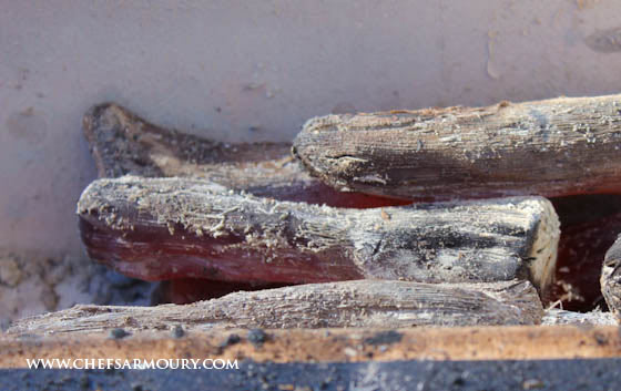 4. Once stacked, leave the charcoal to burn for about 15 mins to build the heat. Reshuffle the logs to get a more even heat.