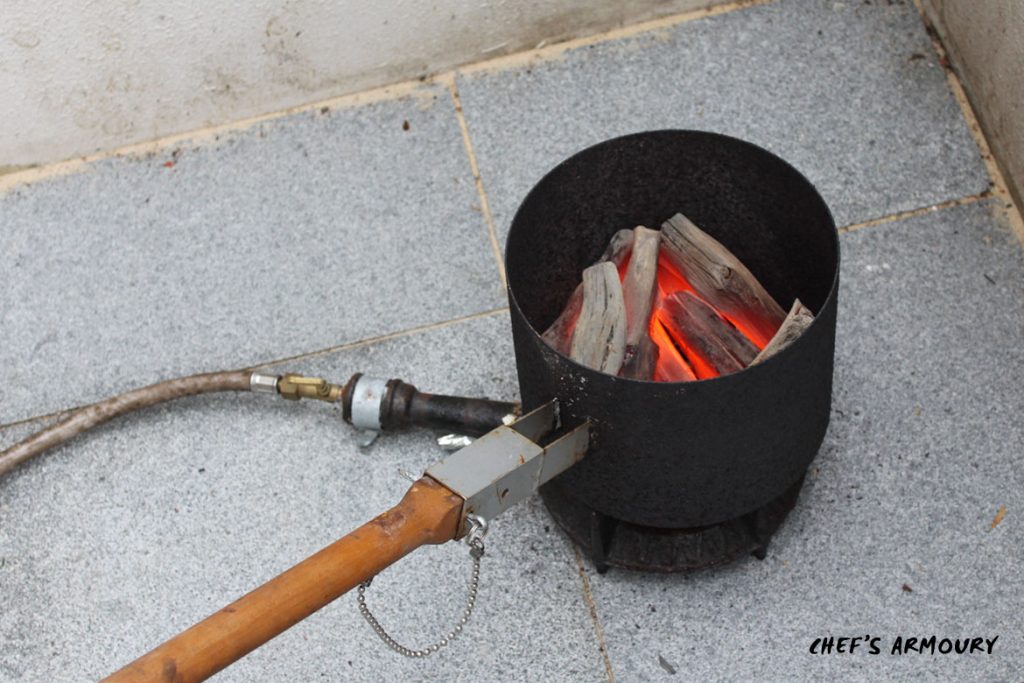 2. Make sure all the charcoal is lit properly before placing it in the konro.