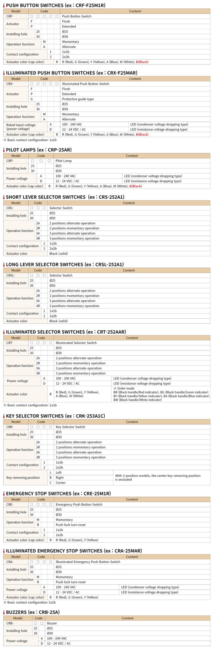Nút ấn, đèn báo, dừng khẩn CR